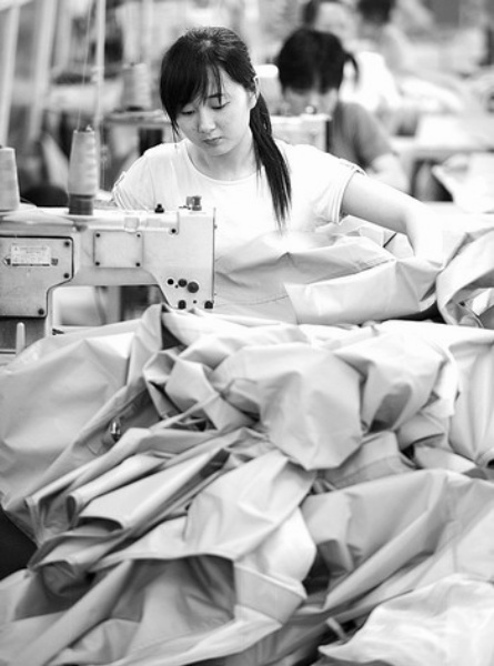 5月25日,浙江省湖州市银格户外旅游用品有限公司的员工正在连夜赶制帐篷。 新华社记者 王定昶摄