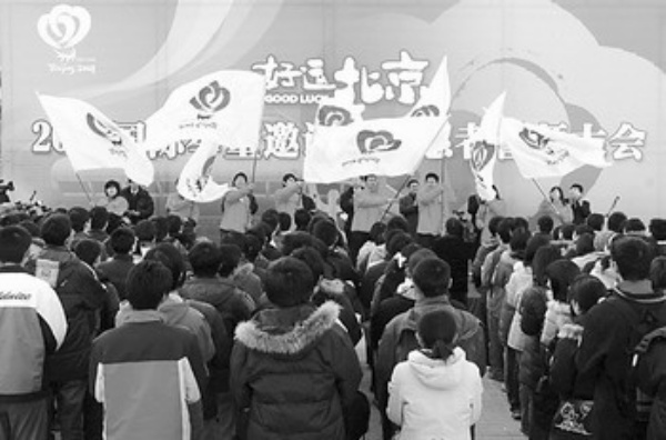 据悉,截至2007年底,赛会志愿者报名总人数已突破80万,城市志愿者报名人数已达92万;奥运会7万名、残奥会3万名赛会志愿者中的80%已经确定了具体人选;已有8万人完成通用培训,3万人完成了专业培训。残奥会志愿者的师资培训工作已经展开。在2007年“好运北京”体育赛事中,近2万名志愿者提供了志愿服务,5方面主要客户群对志愿服务的评价达到90分以上。深入推进“微笑北京”主题活动,先后发布奥运志愿“微笑圈”正式版、少年版和国际版,努力营造参与奥运、服务奥运、奉献奥运的良好社会氛围。2007年12月5日,《北京市志愿服务促进条例》开始实施。结合《条例》的实施,整合推出600个志愿服务公益实践项目,方便市民选择参与。