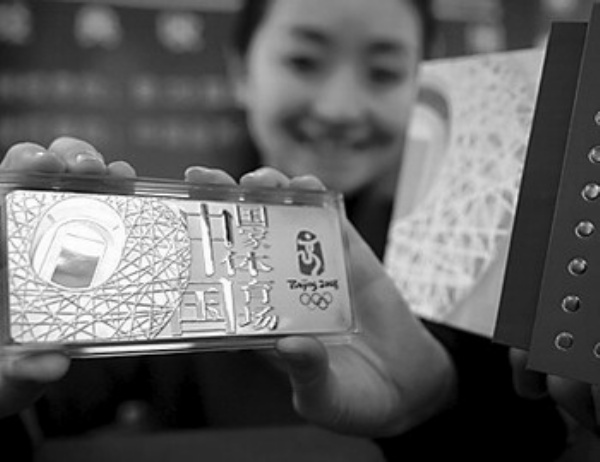 由北京奥组委授权,中国金币总公司和中国印钞造币总公司联合发行的“北京奥运金”彩色系列第四组在京首发。 本报记者 赵 晶摄