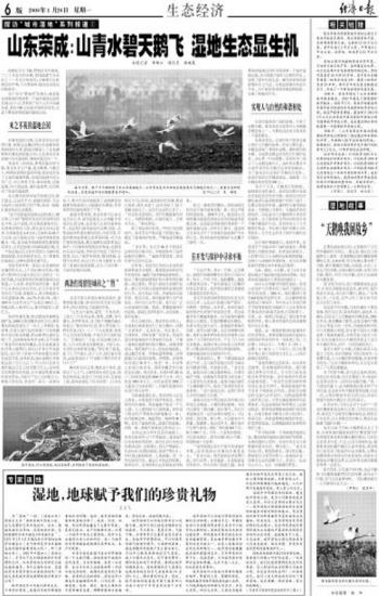山东荣成:山青水碧天鹅飞 湿地生态显生机