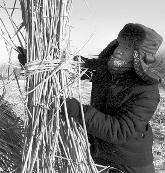 本版编辑 王旭东 冯 磊 福海县一位牧民正在采割芦苇。新疆福海县乌伦古湖芦苇蕴藏量丰富,年可开采量达1万多吨。湖区周边4000余名农牧民利用冬闲,投入芦苇生产,年人均增收1200元。 新华社记者 赵 戈摄