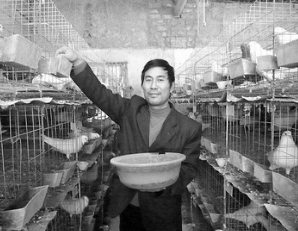 事例 2007年12月28日,记者来到湖南省长沙县春华镇石塘铺村养鸽专业户胡新民的院子里,看到一排排整齐的绿树,树林的对面是土砖砌成的养鸽棚,42岁的胡新民正在里面满头大汗地忙活着。“我这个养鸽棚有400多平方米,2007年养了2100多对鸽子。我们跟长沙的宾馆签订了协议,宾馆每隔三天来拉一次鸽子,每次最少拉100对,每对鸽子现在可以卖到24元,除去买饲料的成本,光鸽子这一项我就有七八万元的收入呢。”胡新民是石塘铺村最早养鸽子的一批人,现在家里的5亩地都租给别人种了,主业以养鸽子为主,他在鸽子棚里还搞了生猪养殖,还在院落里栽了2000株桂花树和500株玉兰。
