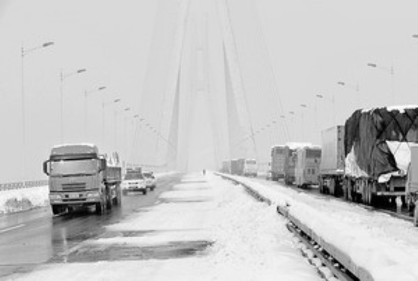 1月28日晚,江苏省境内的5座长江大桥南京长江大江大桥、南京长江二桥、南京长江三桥、润扬长江大桥、江阴长江大桥已经全部开通,受大雪影响的交通正在逐步恢复。