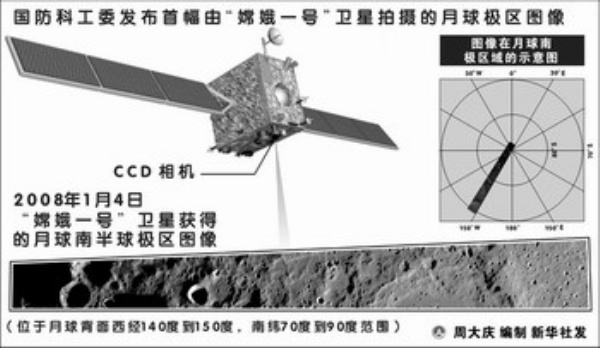 国家航天局新闻发言人裴照宇表示,按照工程总体方案,嫦娥一号卫星上的CCD相机要求的成像范围在月面南北纬70度以内。而在对CCD相机的能力评估后,从1月4日起,科学家开始利用相机对70度以上的月球南北两极区进行光学成像试验,并获得了较高质量的图像。