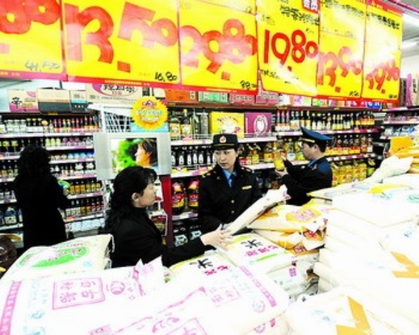 北京市西城工商分局执法检查队工作人员检查辖区内的粮油市场。 新春佳节在即,北京工商部门加大节日市场巡查力度,积极引导和监督食品经营者建立和落实进货检验验收等自律制度,并进一步加强鲜活农产品和粮油市场监管,维护市场交易秩序,保障春节市场供应,维护人民群众食品消费安全。新华社记者 张旭摄