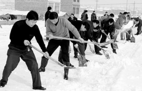2月2日,湖南洞口县高沙镇机关党员、干部在省线1846线竹城公路太平桥路段铲雪保交通。为确保交通运输畅通,该县每天出动6000多名党员、干部和群众上路铲雪,确保了县内所有公路的畅通。 滕治中摄(中经网供图)
