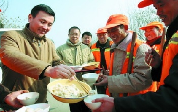 温馨饺子送道班 2月9日,道班工人吃上热腾腾的饺子。当日,安徽省淮北市公路局濉溪分局机关工作人员,把热腾腾的水饺送到百善道班加班的职工手中。濉溪分局从农历除夕到大年初六开展“温馨饺子送道班”活动,为100多名在一线保障公路畅通的职工送去水饺。 李 博摄(新华社发) |