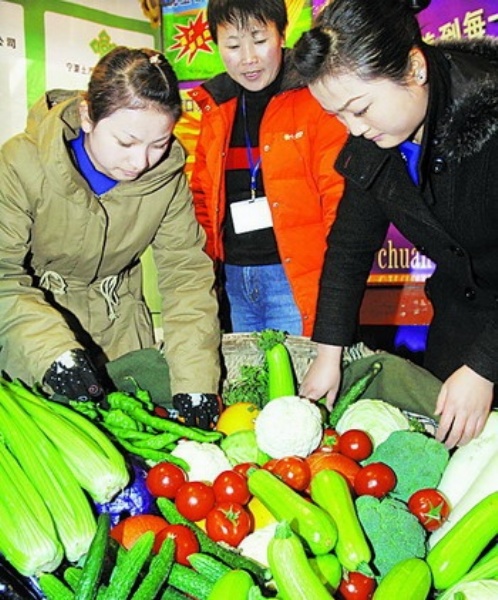 1月9日,工作人员正在一家“种子超市”向农民朋友介绍各种设施蔬菜种植成果。当日,在宁夏科技馆举行的“设施农业物资装备与配套技术展示交流会”吸引了众多农民。“科学种田、技术致富”正成为促进农业增效、农民增收的有效途径。 新华社记者 李紫恒摄