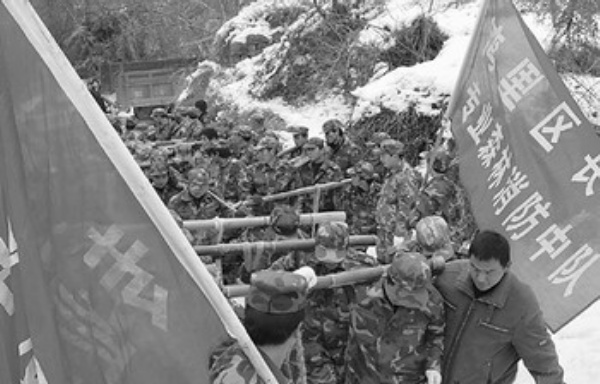 2月10日上午,江西南昌市湾里区几百名党员干部、专业森林消防队员和电力公司职工齐心协力,将电力抢修物资运送上了海拔500余米的太平乡团山村,为该区全面恢复农村电网做准备。 雨雪冰冻灾情发生后,湾里区全面启动了“党徽闪耀计划”,3000余名党员干部夜以继日奋战在抗冻救灾第一线上,抢修供电线路3000多米,恢复了3000多户山区村民用电。 文/图本报记者