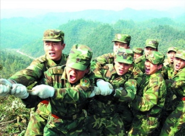 2月13日,316国道江西资溪段佛头岭的群山里,南京军区某部的官兵在执行110千伏建资线输电线路抢险复电任务。战士们齐心协力,把一根根体积大、分量重的输电杆、发电机组等抢修设备料运上寒冷泥泞的山顶,保证在规定的时间内完成任务。吴志贵 摄