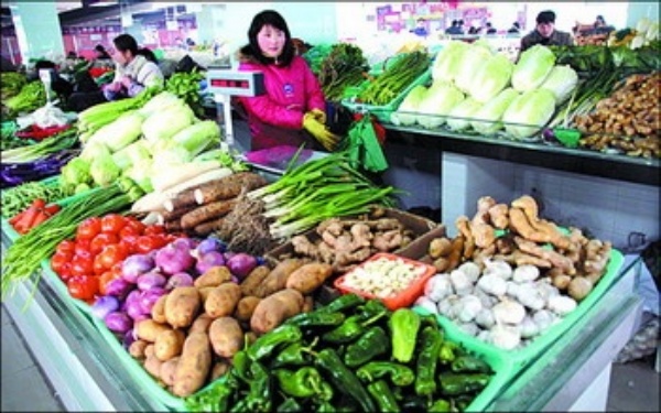 天气连续放晴,江苏南京市的蔬菜价格从春节前回落,现在更是供应充足,价格基本平稳。蔬菜供销部门和农贸市场通力合作,使南京市的蔬菜供应在雨雪灾害后迅速恢复正常。 董金林摄
