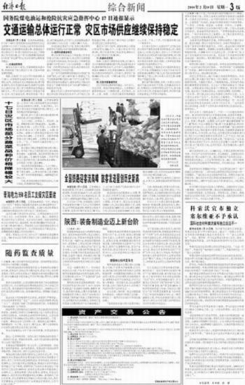 交通运输总体运行正常灾区市场供应继续保持稳定