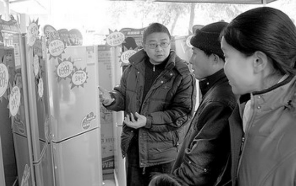 斑竹园镇顺江村一组组长刘祝林告诉记者,他们全组50多户,彩电是家家都有了,像徐祖明这样的农户属于中等,有条件换了一代彩电,而更多的不会轻易换。有了这样好的政策,可能有人会考虑换新换好的。刘祝林也分析说,农民对冰箱的需求可能不像想象的那么强烈,因为一是农民多半自个儿有菜园,二是冰箱毕竟耗电太多。
