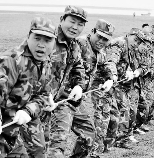 2月19日,江西某预备役师高炮团官兵在南梅线81号塔基拉电缆。 新华社记者 宋振平摄