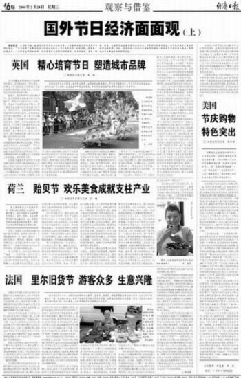 美国节假日经济呈现四大购物旺季。一是“星期五零售高峰”。在美国,感恩节为11月份的第四个星期四,商家别出心裁,在紧接其后的星期五推出花样繁多的促销活动,吸引着大批顾客前来购物。这一天的营业收入往往比全年其他任何一天都要多,零售额通常占整个假日销售额的5%左右。2007年的“星期五零售高峰”,商家通过延长营业时间、提高折扣力度和加强营销力度等各种方式吸引顾客,客流量达到了1.47亿,比2006 年上升了8.3% 。可以说,几乎半数美国人都加入了采购队伍,其中大约有14.3%的人不到凌晨4 点就赶到商场购物了。美国几家大零售商场营销总监估计,2007年“星期五零售高峰”销售额要占全年销售总收入的15%之多。