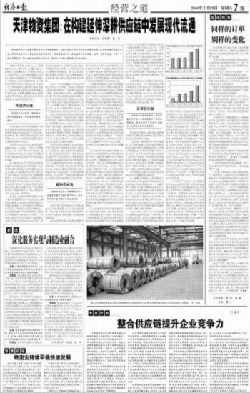 依托良好的产业发展背景和多年的市场摸爬滚打,长期从事生产资料贸易的大型国有流通企业天津市物资集团总公司,将现代物流的核心理念供应链管理转化为一种经营管理方式,在此过程中通过构建、延伸、深耕供应链,打开了广阔的业务空间,使企业焕发出强劲的生命力,实现了从传统流通向现代流通的转变。
