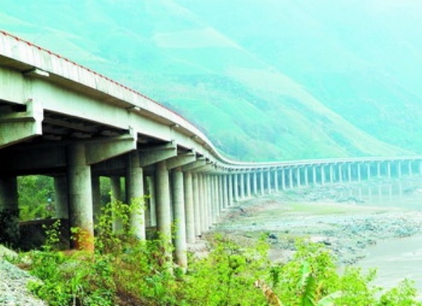 这是新河高速公路局部(2月25日摄)。 2月26日,云南南部河口县新街至河口县城连接越南北部老街省的高速公路全线贯通。 全长56.3公里的新河高速公路为双向4车道,是国道二连浩特至河口公路的最后一段,也是云南连接东盟国家的首条高速公路。 李文圣摄 (新华社发)