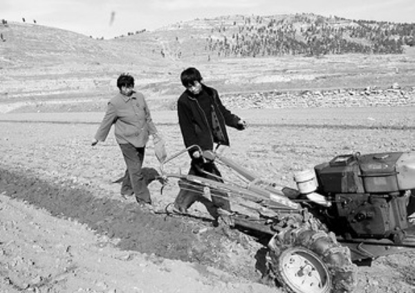 2月27日,山东平阴县孔村镇石板台村农民在春耕。近日,山东省大部分地区冰雪融化,农民抓住时机进行春耕。 新华社记者 范长国摄