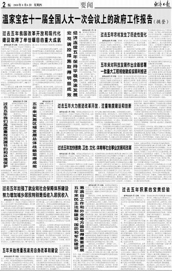 温家宝在十一届全国人大一次会议上的政府工作报告
