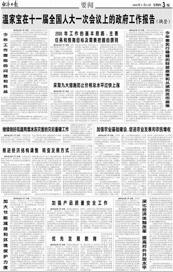 温家宝在十一届全国人大一次会议上的政府工作报告