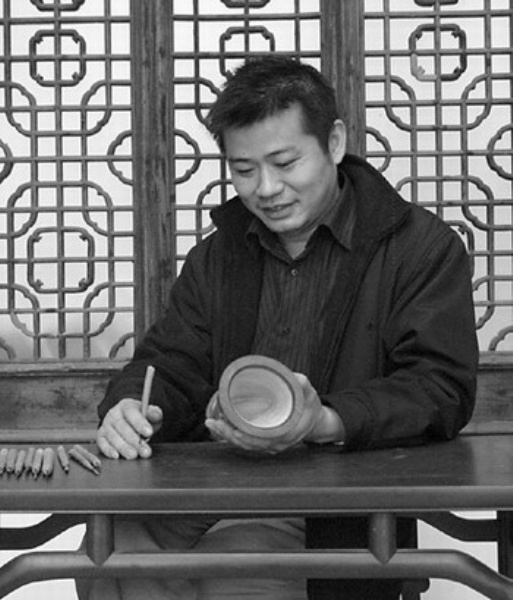 郑尧锦出生在歙县富溪乡郑村的一个书香人家,父亲是个小学教师。这使得郑尧锦小小年纪就喜爱上了绘画,正是因为这个爱好与特长,郑尧锦高中毕业后就进了徽州旅游工艺厂,经过多年的专业磨练成为竹、木、角雕刻领域的行家里手。“白菜竹雕筒器”是郑尧锦的竹雕代表作之一。两棵既相连接又各自生长的白菜,竟然就是原竹根的自然形态;两棵白菜的根部似断似连,岌岌可危却又坚实如山。尤其是那白菜的菜叶,随心翻卷得自然天成,形似与神似达到了极限;而那叶面上的经脉,更是栩栩如生,薄如蝉翼,晶莹剔透,令人叫绝。郑尧锦介绍说,光是为了寻找用于雕刻创作的竹根,他就跋山涉水地挖了200多棵竹子,最后才得到两棵适用者,一棵雕了《罗汉》,一棵就雕制了这件《白菜》。