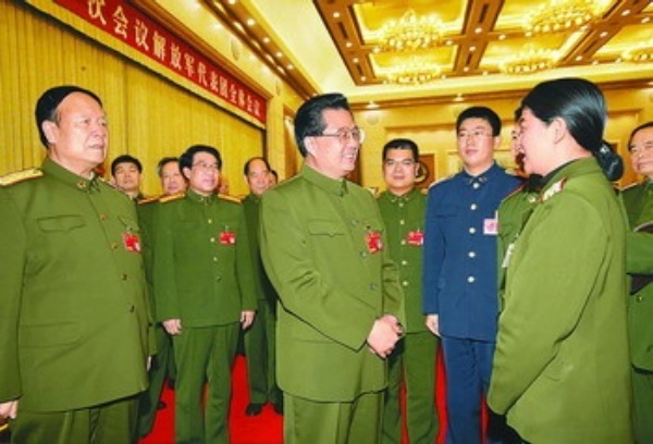 参加十一届全国人大一次会议解放军代表团全体会议后,中共中央总书记、国家主席、中央军委主席胡锦涛,在这里亲切会见了来自基层的部分军队人大代表。
