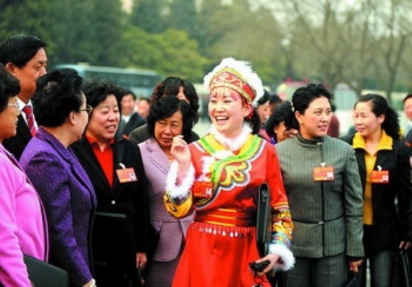 人大黑龙江代表团的刘蕾代表,赫哲族,是黑龙江同江市街津口乡渔业村农民,也是当地有名的养蜂致富带头人。她是首次当选全国人大代表,首次来到北京———