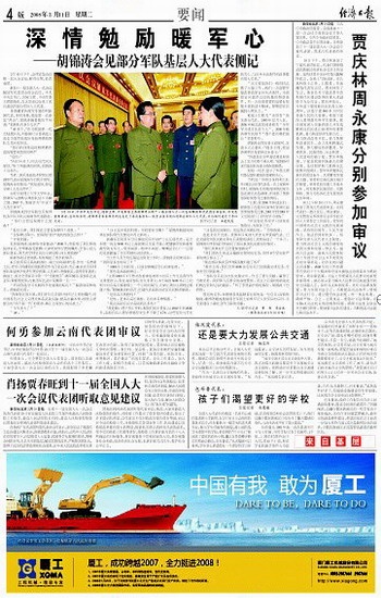 肖扬贾春旺到十一届全国人大一次会议代表团听取意见建议
