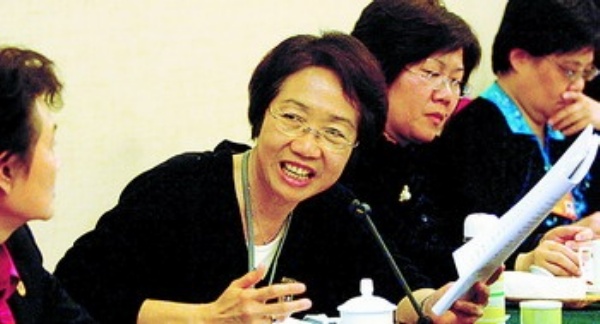 3月10日下午,政协妇联界委员讨论两高报告。陈婉娴委员(左二)说:“和谐社会的建设需要全社会共同参与。” 本报记者 赵 晶摄