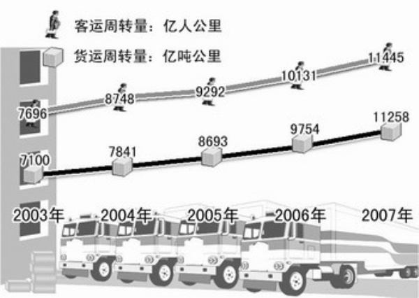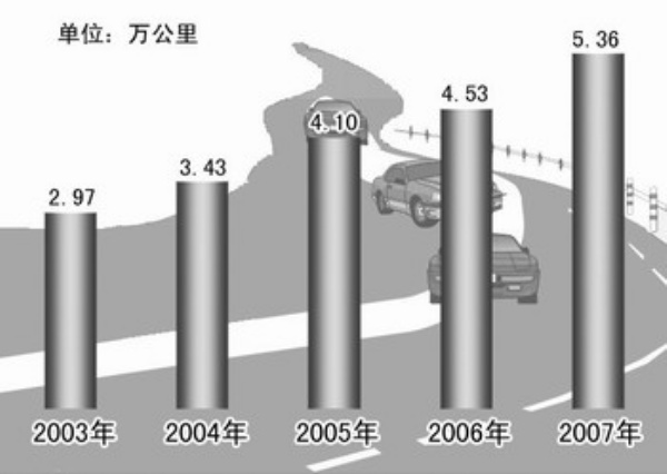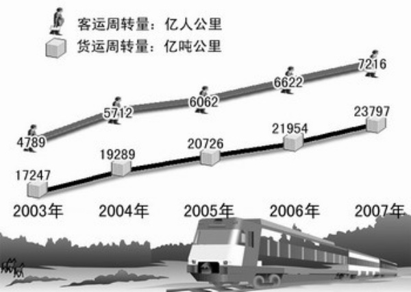 回眸5年,新增电力装机3.5亿千瓦,是1950年到2002年53年的总和;新增公路19.2万公里,其中高速公路2.8万公里;新增铁路营运里程6100公里;建成万吨级以上泊位568个;新增电信用户4.94亿户。
