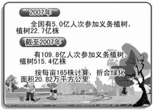 2007年全国5亿人次参加义务植树