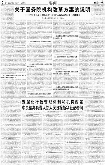 中央编办负责人答人民日报新华社记者问