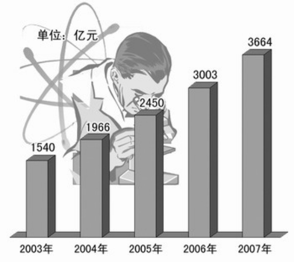 基础研究得到加强,高技术产业快速发展,技术市场规模稳步扩大。基础研究是科学技术发展的根基,近年来,无论是国家投入还是地方扶持,力度不断加大。2007年,宁波市财政科技投入达15.3亿元,比上年增长53.5%;同样,全国人大代表、云南省科技厅厅长龙江透露,近几年云南省共实施省院省校科技合作项目233项,总投入26.5亿元,新增产值122.6亿元;在全国,仅2007年用于基础研究的经费投入就达180亿元。