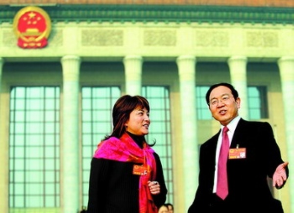 3月10日上午,十一届全国人大一次会议举行第三次全体会议,听取两高报告。会后,人大重庆团的刘卫星代表(右)、沈铁梅代表交流感受,刘卫星代表说:“社会和谐是经济发展的有力保障!” 本报记者 李景录摄