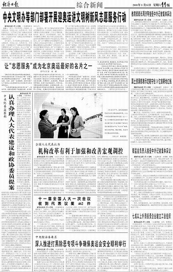 中央文明办等部门部署开展迎奥运讲文明树新风志愿服务行动