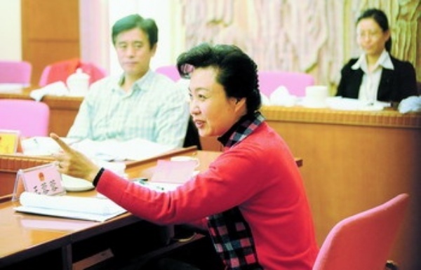 3月14日,人大北京代表团会议室。北京京剧一团团长王蓉蓉代表发言,就弘扬中华传统文化、繁荣社会主义文艺畅谈了自己的想法。 本报记者 李景录摄