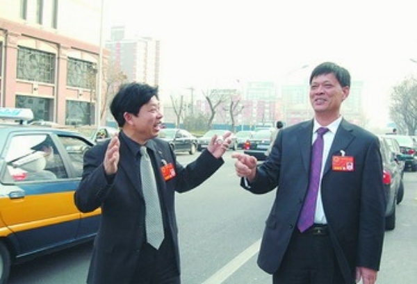 | 徐承云代表(左)和陈文东代表都是来自福建农村的村党支部书记,中午休息时喜欢在驻地附近走走,看北京街头的车水马龙,畅谈家乡的发展蓝图。 |