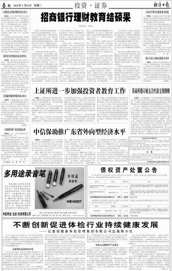 对于未来的发展,慈铭已经提出了“健康管理服务”的方向。所谓“健康管理服务”,包括信息资料收集、评估和健康干预三个部分,这几年,慈铭的主要业务正是围绕前两项展开。“今后有一些人可能需要专门的机构来干预他恢复健康,比如说,定期打电话提醒他吃药、锻炼等。”从普通人群向高端人群发展,从专注体检到开展全方位的“健康管理服务”,韩小红表示,未来慈铭将适应市场的需求,不断创新促进行业发展。 文/儒 彦