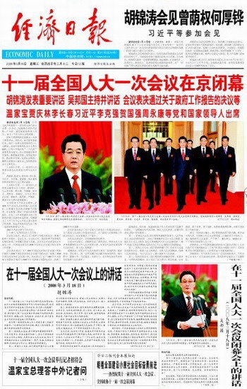 温家宝:我去年曾经说过,我这个人是一个充满忧患意识的人。我认为“患生治”。未来的5年是中国实现全面小康的关键时期,我们充满机遇和希望,但也面临困难和艰险。我在报告中只讲到2008年的任务,没有讲今后5年的打算。因为在做政府工作报告时,新一届政府还没有组成。现在,我确实应该考虑今后5年的任务。我在想,在今后的5年,要使中国经济有一个更大的发展,使人民生活有一个更大的提高,使社会公平正义有一个更大的推进,使改革开放迈出更大的步伐。首先,经济要保持平稳较快发展,抑制通货膨胀。这不是一年的任务,而是五年的任务。第二,要在结构调整和经济发展方式的转变上有新的突破。重点抓好两个环节:就是扩大内需和自主创新。第三,有三件工作必须紧紧抓住:一是大力加强农业,特别是增加农业的投入,使粮食和主要农产品保持稳定增长,使农民收入保持稳定提高。二是继续实行积极的就业政策,5年内要解决大约5000万人的就业问题。三是努力实现“十一五”确定的节能减排目标,使生态环境有一个明显的改善。第四,在社会发展和改善民生上,我们准备建立四个体系:义务教育的经费保障体系、覆盖城乡的医疗卫生服务体系、以廉租房和经济适用房为主的城市住房保障体系,以及包括失业、养老、医疗、最低生活保障为主要内容的社会保障体系。为此,我们需要继续加强和改善宏观调控,更充分地发挥市场配置资源的基础性作用,继续推进改革,包括农村改革、企业改革、金融改革、财税改革和政府自身改革。