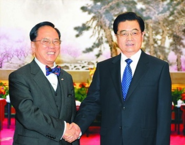 3月18日,国家主席胡锦涛在北京中南海会见来京列席十一届全国人大一次会议的香港特别行政区行政长官曾荫权。 新华社记者 李学仁摄