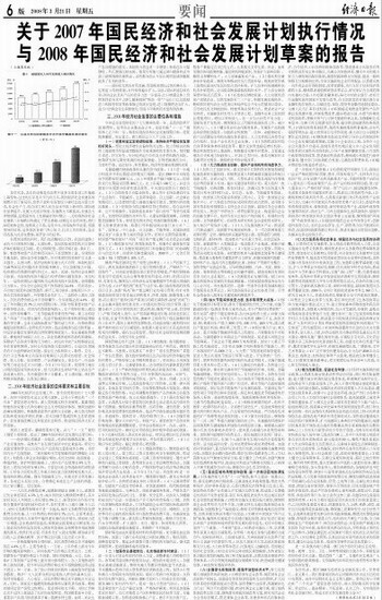 关于2007年国民经济和社会发展计划执行情况与2008年国民经济和社会发展计划草案的报告