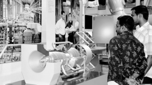 本届展会的主题为:“倡导节能减排消费,保障城市生态环境的可持续发展”。该展览创办于1999年,每年举办一届,是中东地区规模最大的综合性环保专业展会。随着环保理念的日渐普及,中东各国正高度关注可再生能源和清洁能源的开发与利用,该地区水资源开发与环保治理领域商业前景被广泛看好。图为西门子公司此次展出的经过空气动力学优化的SGT5—4000F型高效节能燃气涡轮机组模型吸引了参观者驻足观看。