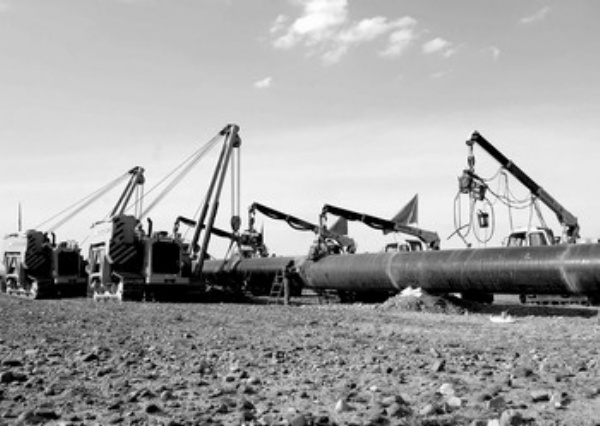 2008年3月11日,位于甘肃武威市凉州区丰乐镇境内的西气东输二线工程施工现场。 新华社记者 韩传号摄