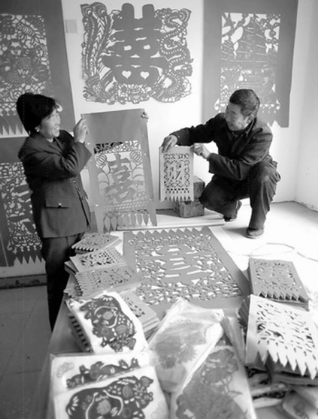 天津宁河县丰台镇北村农民刘士存继承了包括染纸、制版、制刀、雕刻在内的一套祖传刻纸工艺。过去,刘士存只是在农闲时用这门手艺换点零用钱;近几年,他和老伴创作的吉祥喜庆刻纸作品,刀法整洁、图案精美,成为当地工艺品市场的旺销货,年收入达3万多元,大大超出了他们的务农收入。