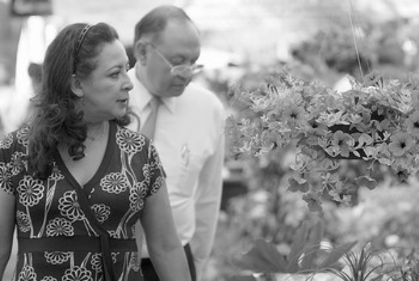 墨西哥城旅游部门组织鲜花展销节,展销的近两千种花卉吸引了众多市民前来观赏选购。图为墨西哥城市民在鲜花展销节上观赏花卉。 新华社发