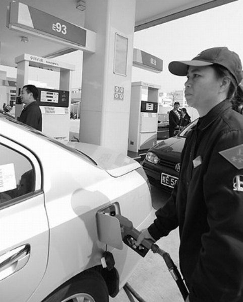 3月1日,一辆轿车正在加注非粮类燃料乙醇汽油。当日起,广西北海市各加油站开始销售添加非粮类乙醇汽油。