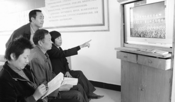 河南省内乡县灌涨镇杨岗村的村民们通过远程教育平台,学习小麦种植技术。眼下,该县80%的村都开通了远程教育网络,它们成为村民学习科技的重要载体。