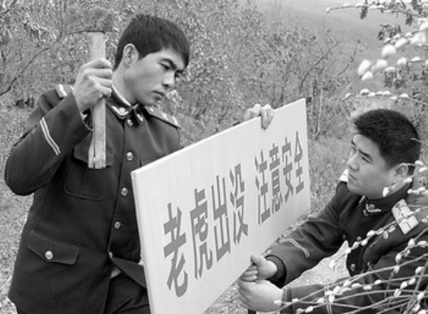 近年来,吉林省珲春市东北虎自然保护区的老虎数量迅速增加,珲春边防检查站官兵在发现东北虎踪迹的地方设立警示牌,并发起“保护东北虎志愿者春季行动”,共清理“捕虎钳”三具、钢丝套500余个。 新华社发