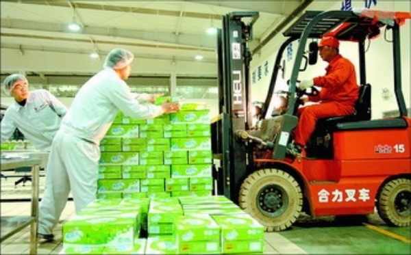 伊利集团黄冈分公司,员工们在连夜发货。近年来,黄冈市充分发挥区位优势,以优惠的政策吸引了汇源、太子奶、伊利等知名企业前来落户,推动了当地相关产业发展。