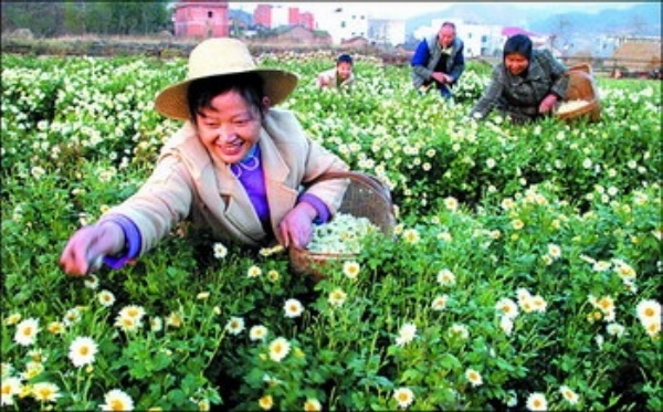 麻城市福田河镇是全国三大菊花基地之一,全镇福田白菊总面积2万亩,总产量达2000吨,通过与科研院校建立长期合作关系,提高菊花品质,2007年全镇菊花产品收入过亿元,老区的特色农业又上新台阶。